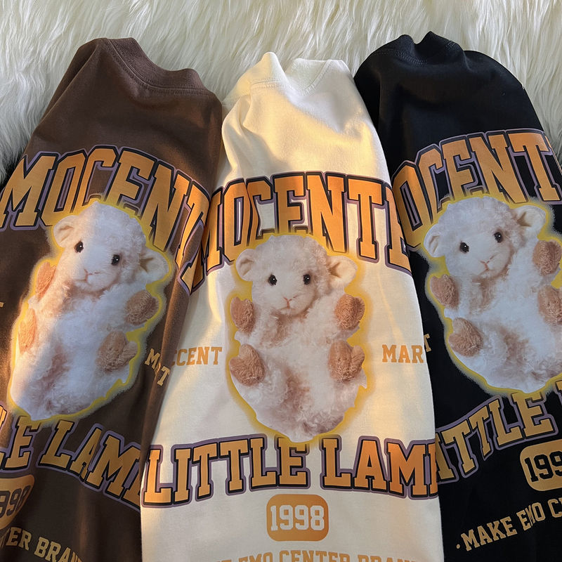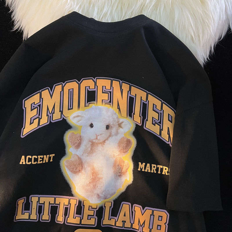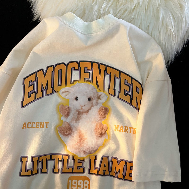 Summer fun cute lamb print short-sleeved T-shirt men and women loose street couple t shirt for women cartoon harajuku dress