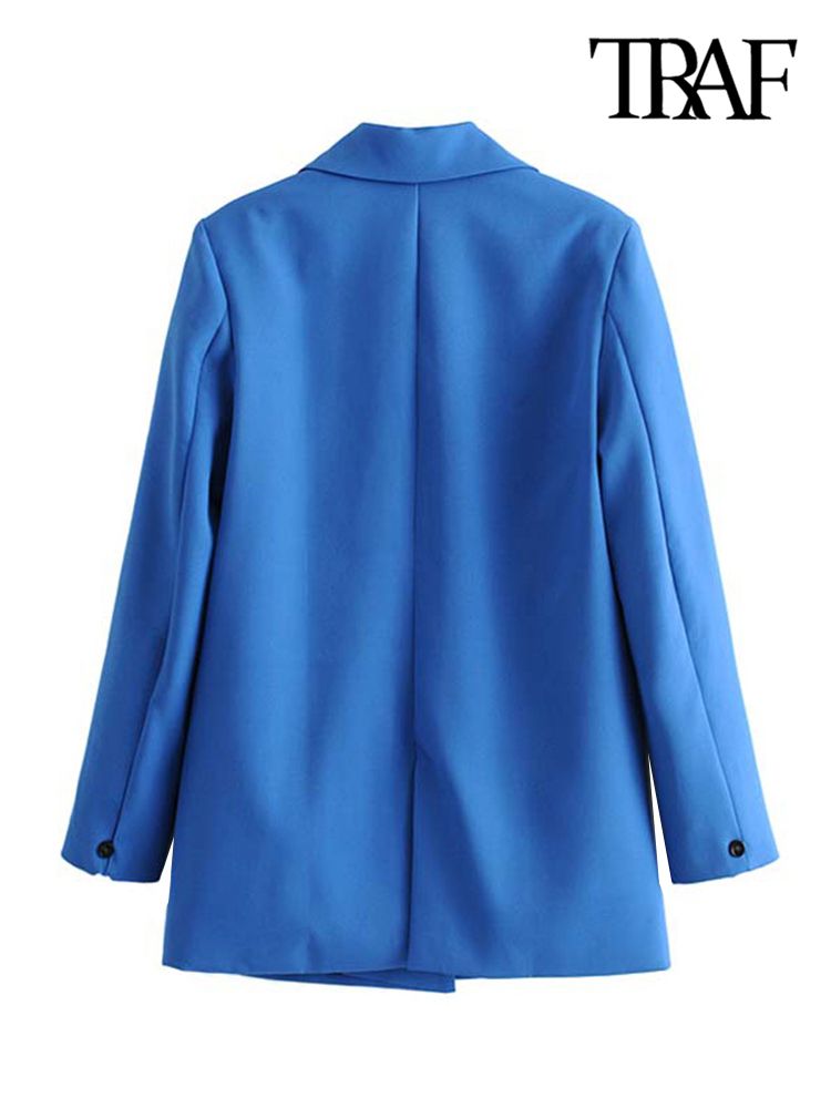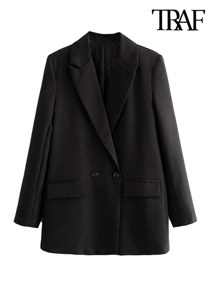 TRAF Women Chic Office Lady Double Breasted Blazer Vintage Coat Notched Collar Long Sleeve Ladies Outerwear Stylish Tops