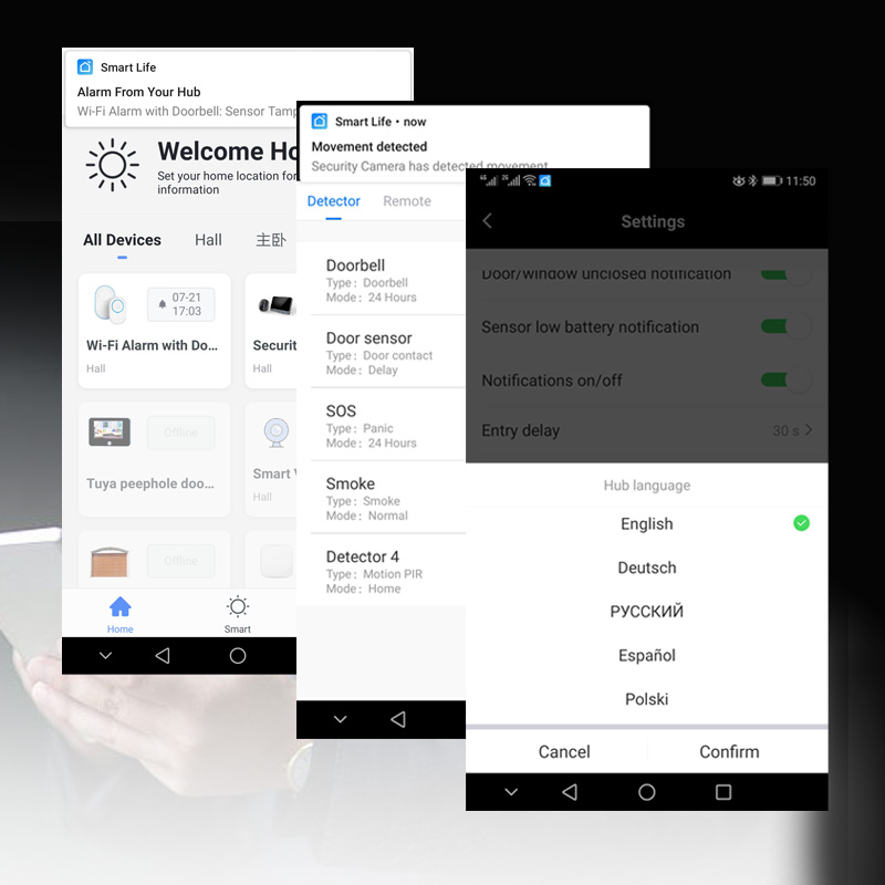 - Arm / Disarm / Away arm / Home arm / Timer provide most convenience mode for you