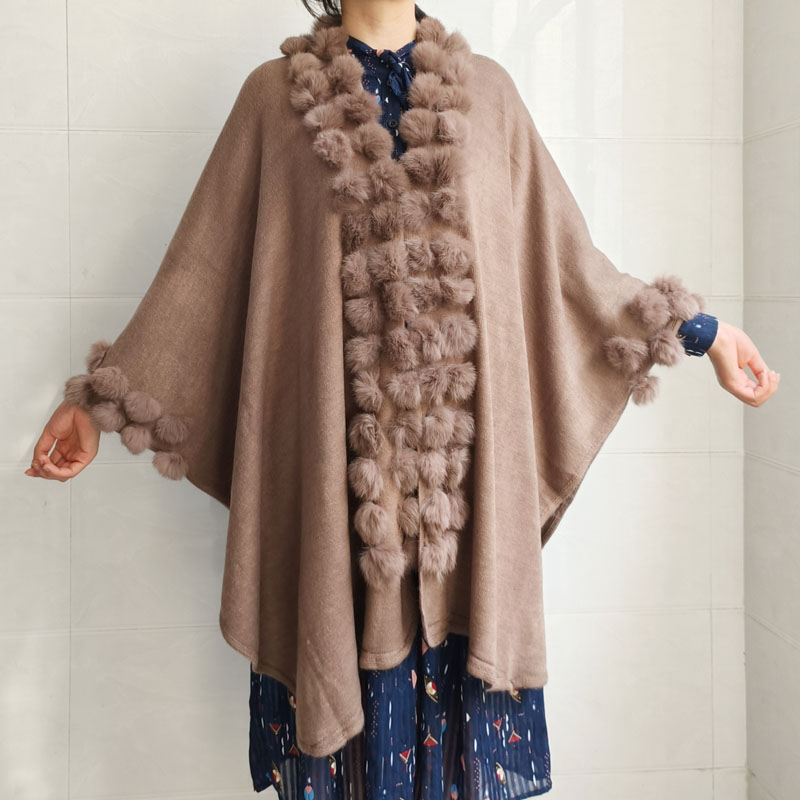 Design : Women Rabbit Fur Poncho Shawl Coat