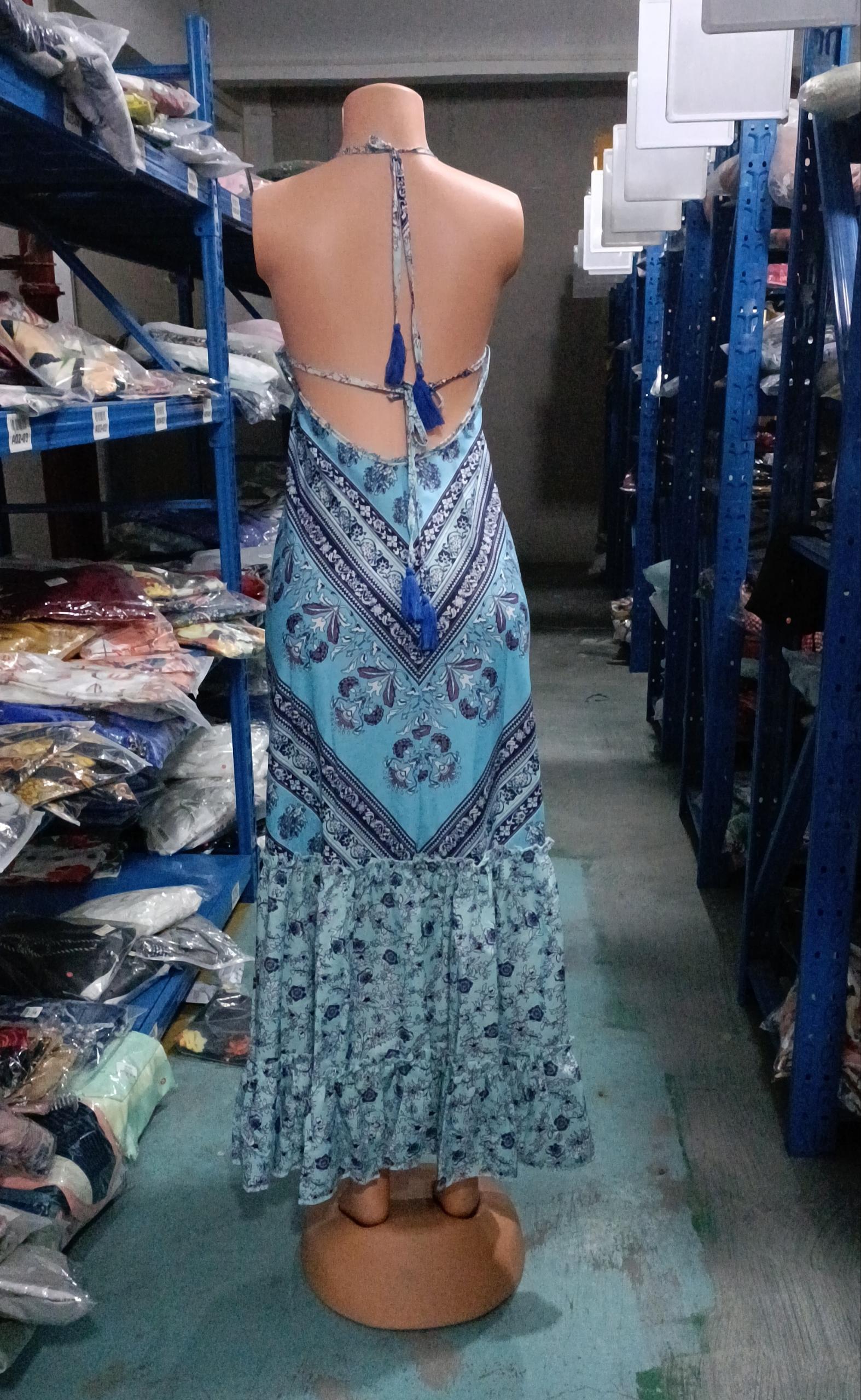 Tribal Print Halter Maxi Dress Women Summer Sexy Backless Vintage Party Club Boho Long Dress
