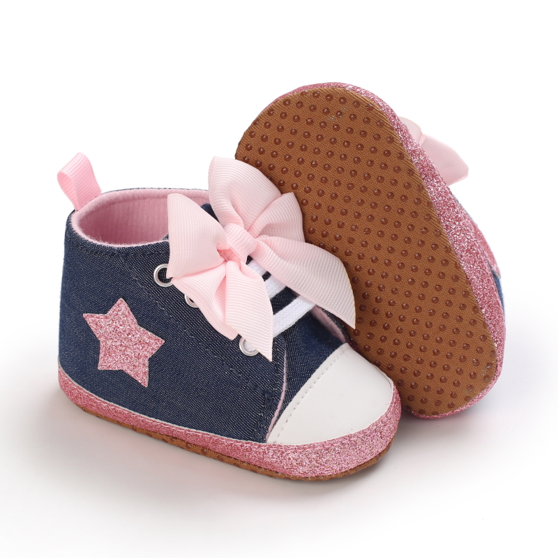 VALEN SINA Newborn Girl Shoes First Walker Baby Shoes Soft Non Slip Sole Lovely Bow Casual Canvas Children Shoes
