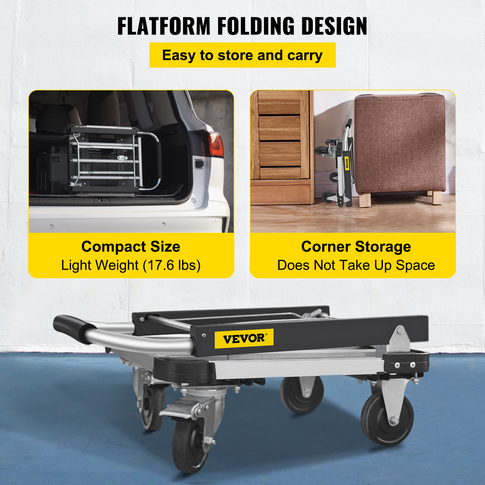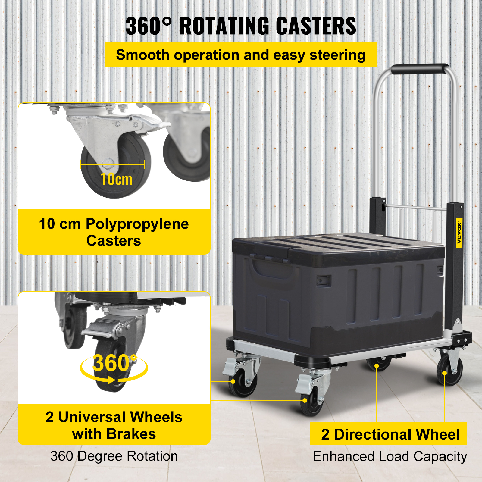 Our folding trolley features premium aluminium alloy material, a lightweight and compact foldable design, and is easy to carry around. VEVOR Folding Cart will become an assistant to help you carry items during shopping, traveling, and moving, saving you time and energy. Look no further than VEVOR's pushcart. Let's get rolling.