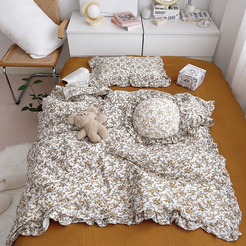 Korean Vintage Floral Printed Ruffled Cotton Baby Duvet Cover Kids Children Infant Cot Crib Duvet Covers Quilt Cover Bedding