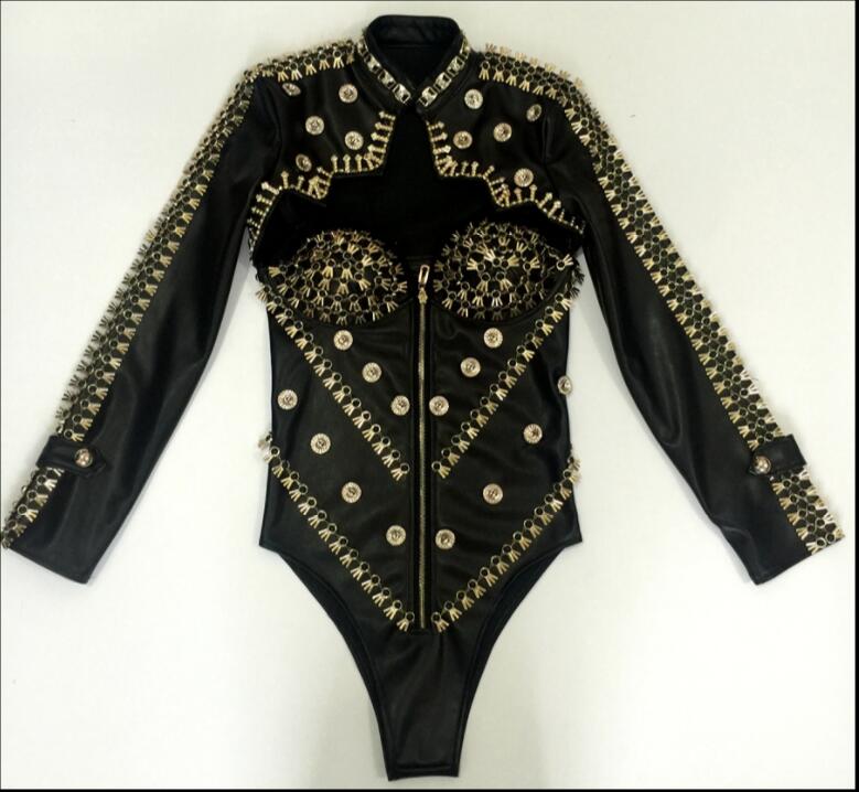 White Black PU Leather Bodysuit Sexy High stretch Leotard Catsuit Bar DJ singer Costume Leading dancer pole dance stage Outfit