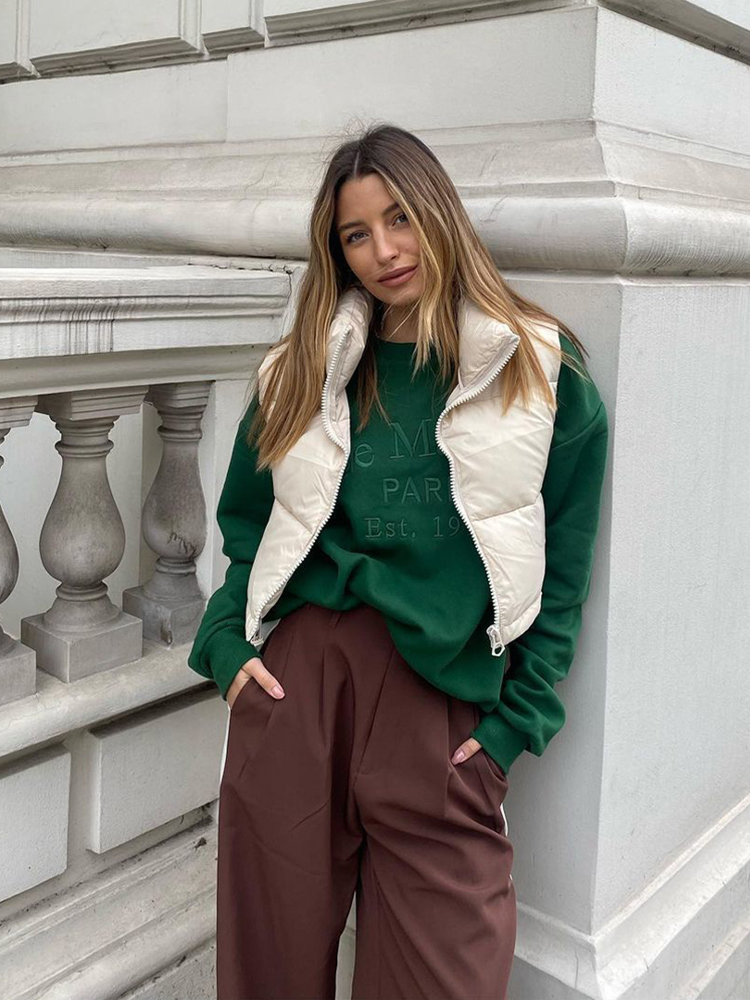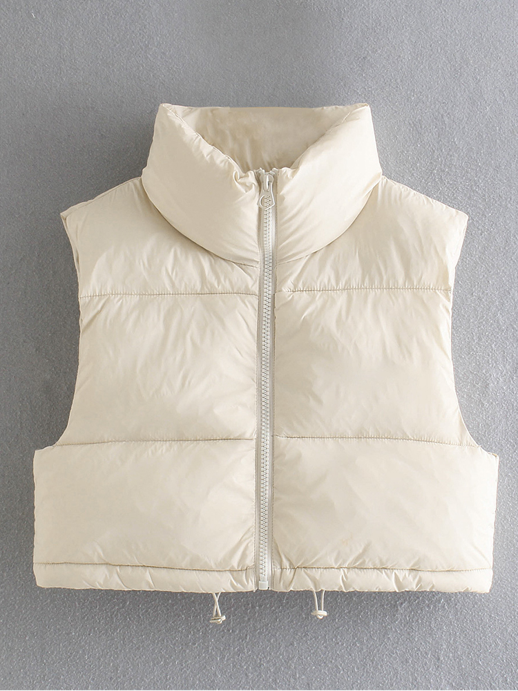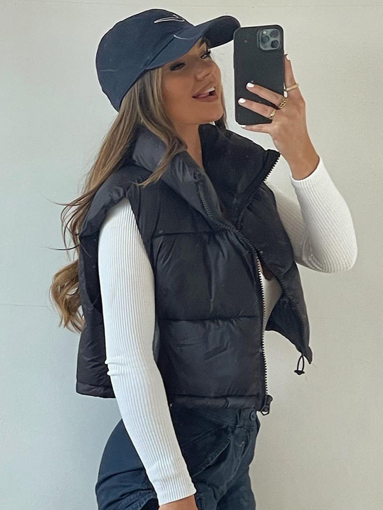Willshela Women High Neck Cropped Waistcoat Puff Vest Casual Woman Sleeveless Jacket Chic Lady Winter Warm Outfits