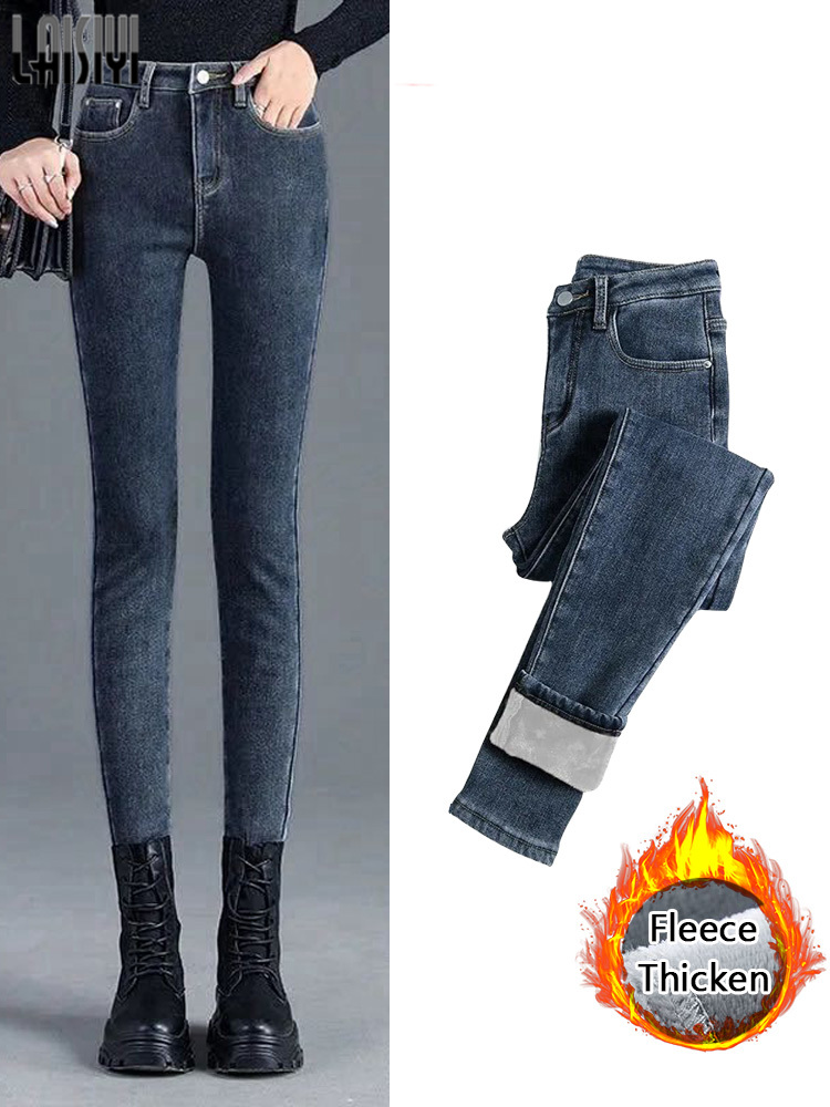 Winter Thick Jeans Women Velvet High Waist Skinny Trousers Casual Fleece Warm Pants Slim Fit Stretch Ladies Denim Pencil Pants