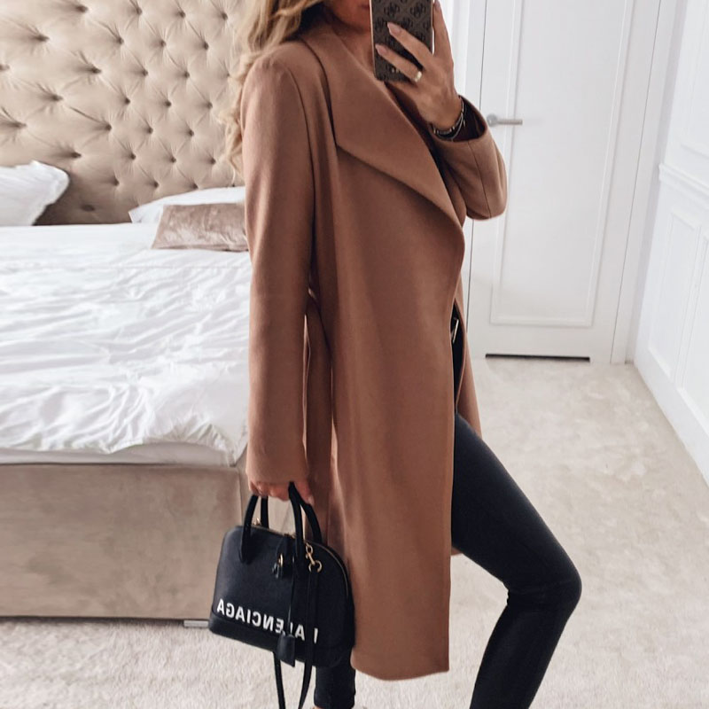 Feature : Women Turn-down Collar Button Woolen Coat