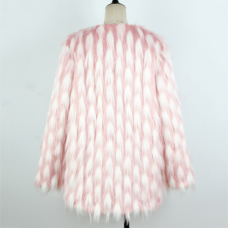 Women Faux Fur Coat Fur Jacket Female Winter Warm Leather Contrasting Imitation Fur Pink Coat Short Outwear