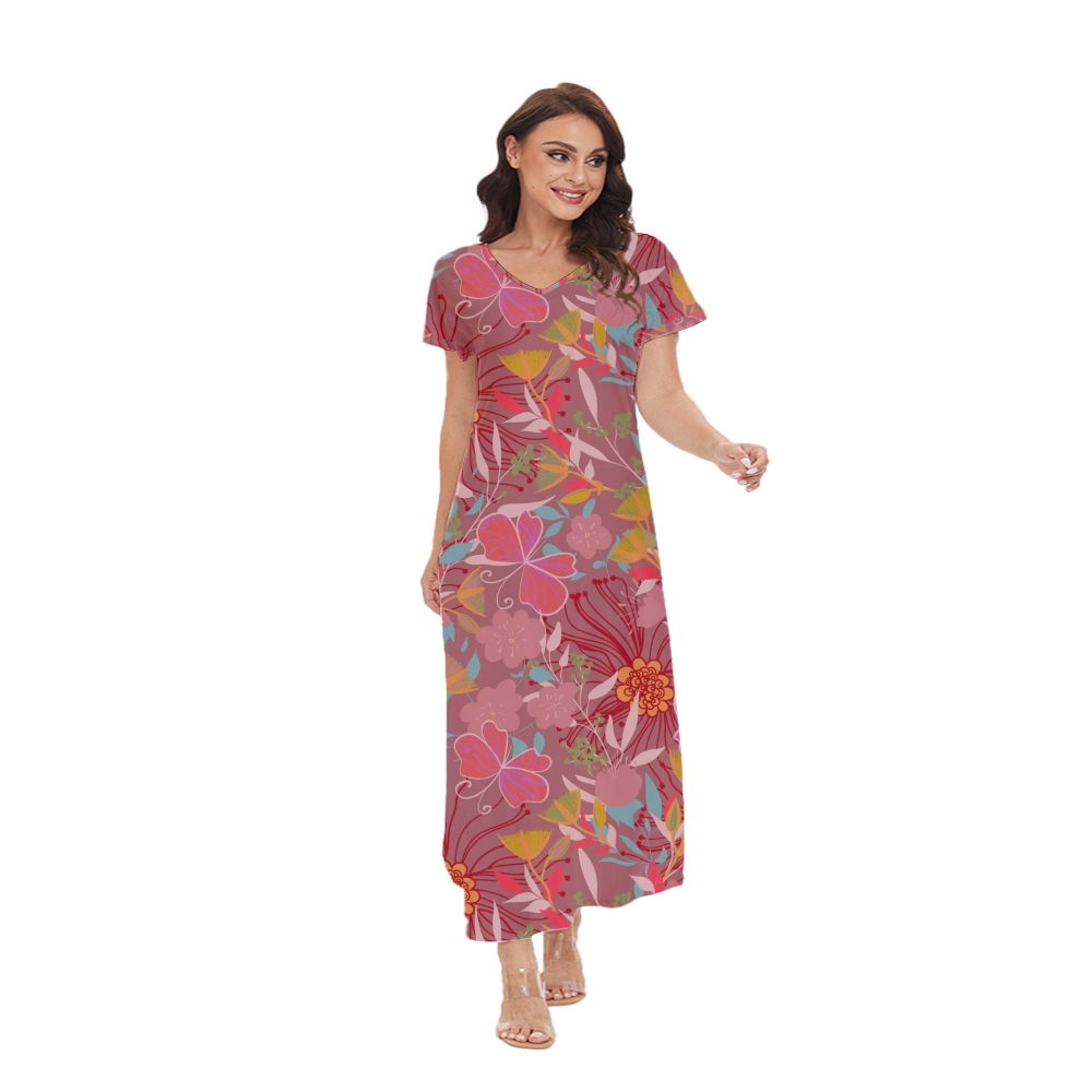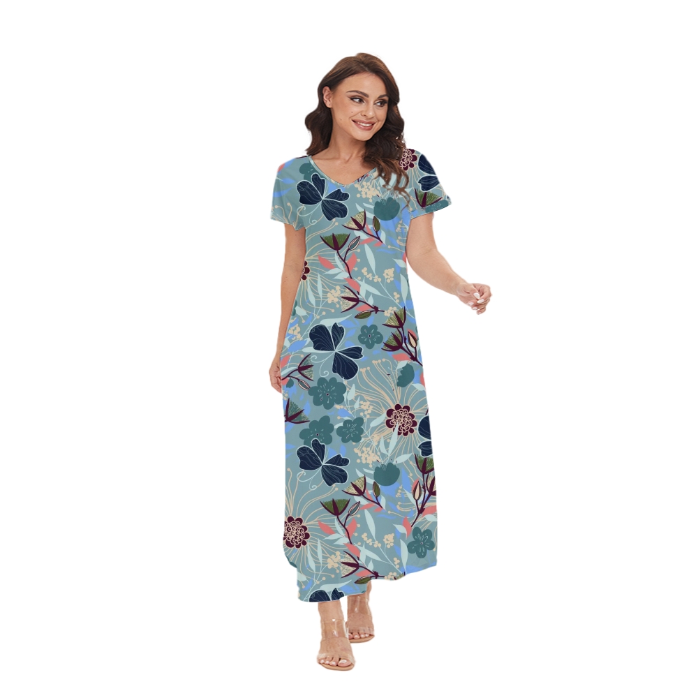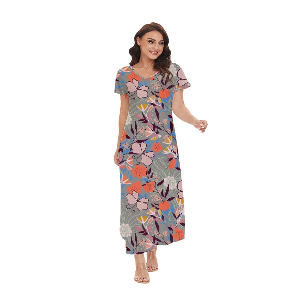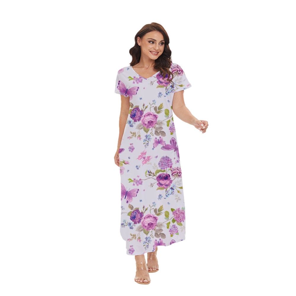 Women Irregular Hem Neck Dresses Short Sleeve Butterfly Floral Printing Causal Summer Beach Dress Ladies Long Dresses