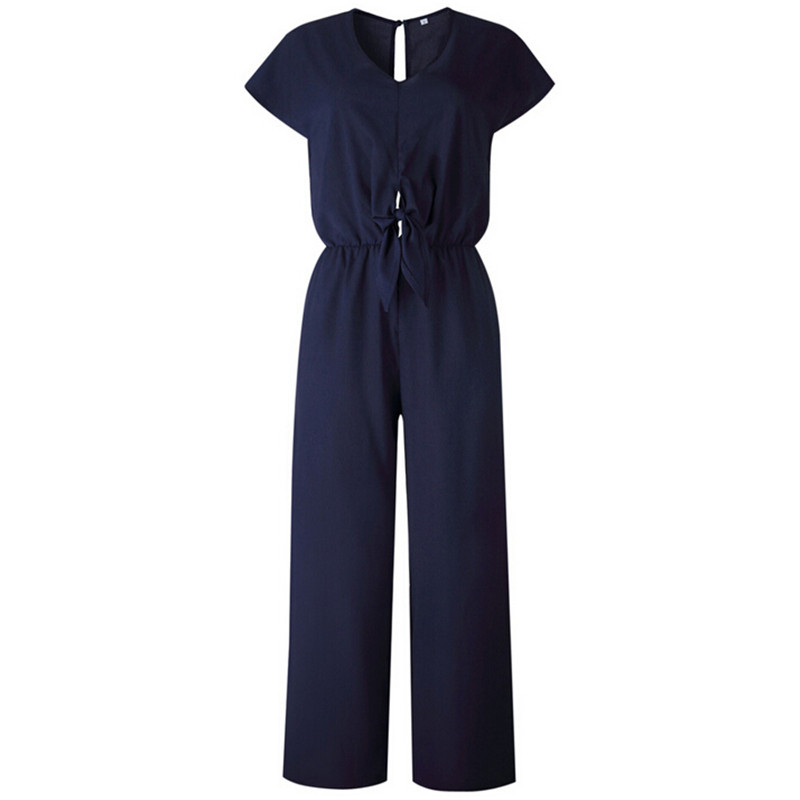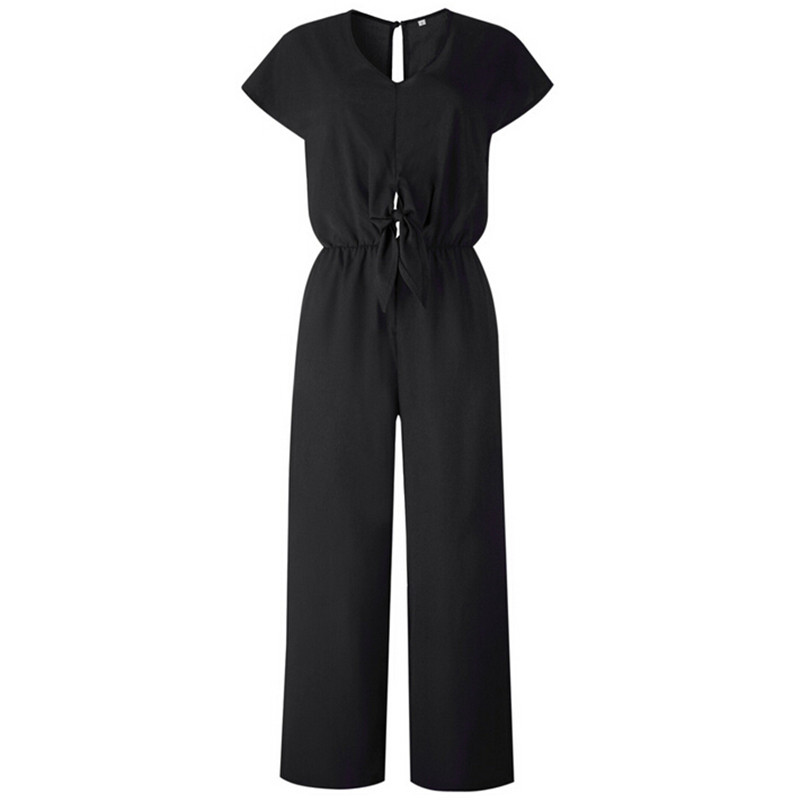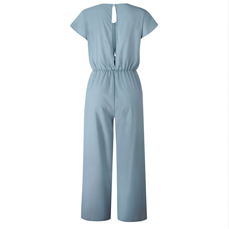 Women Short Sleeve Jumpsuit Solid Color Wide Legs Bodycon Jumpsuit  Simple Romper Trousers Club Wear 2019 V-neck Summer Playsuit!