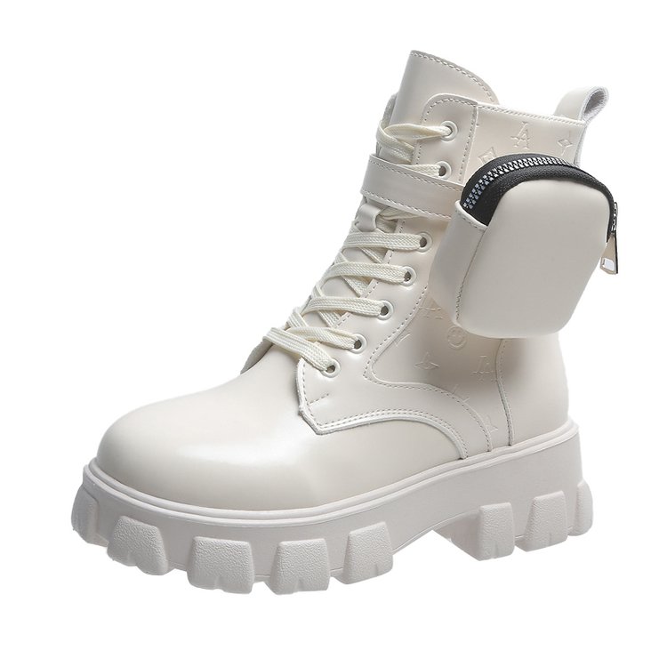 Women Thick-Soled Leather Boots Casual Women Boots Women Lace-Up High Boots Nylon pouch heels flats booties