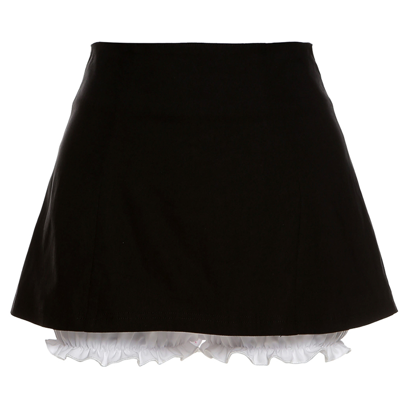 Women's A-Line Mini Skirt Preppy Style High Waist Zip Up Short Skirt with Bloomer Shorts Skirt Slim Bud Mini Skirt
