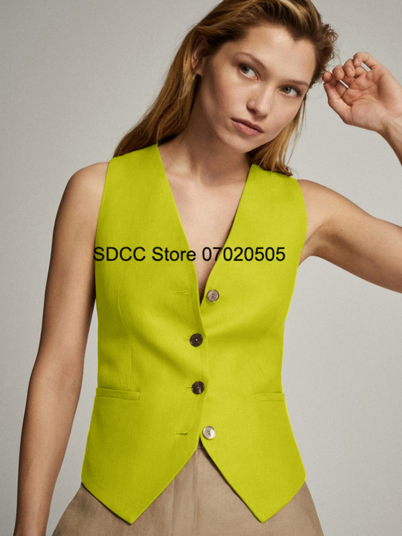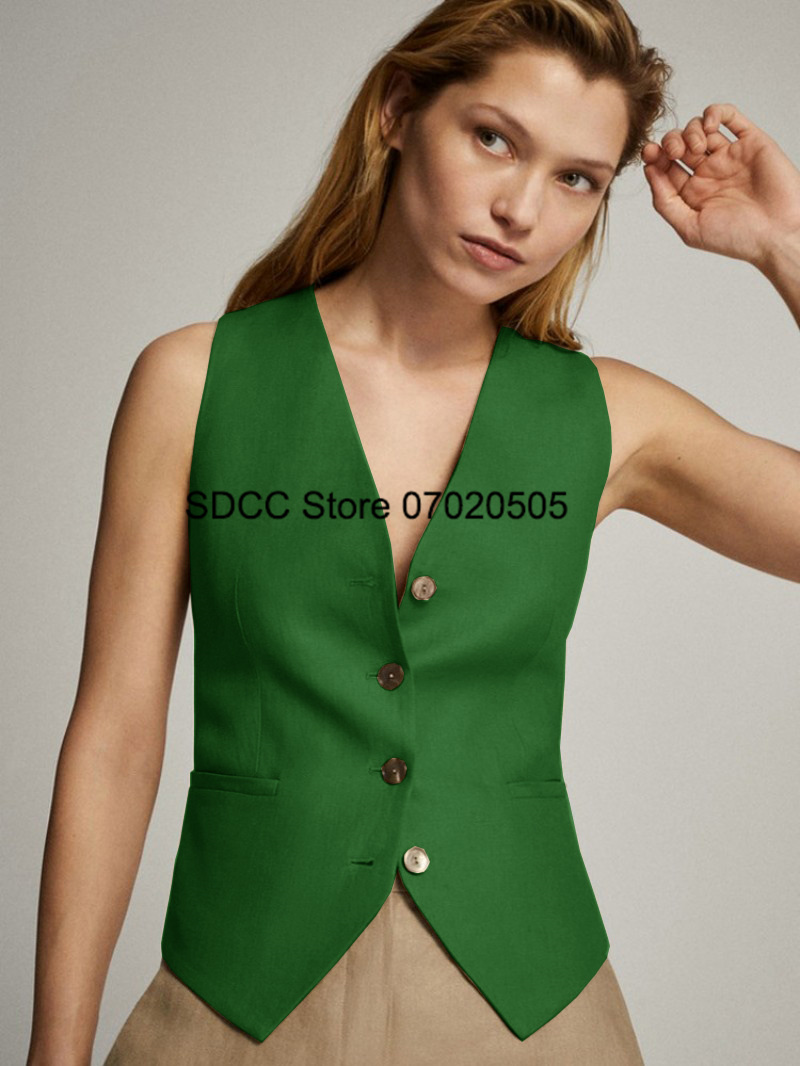 Women's Vest Casual Slim Fit Solid Color V-Neck Linen Sleeveless Jacket Single Breasted Coats