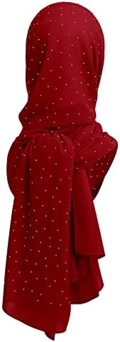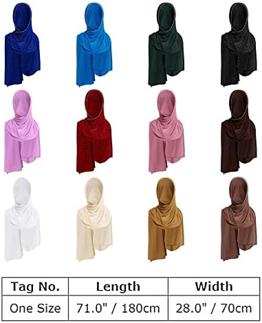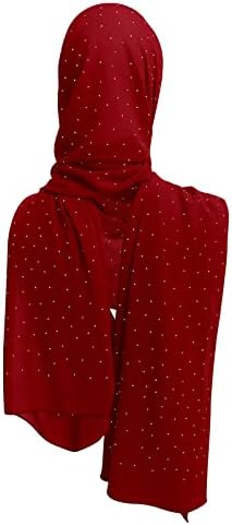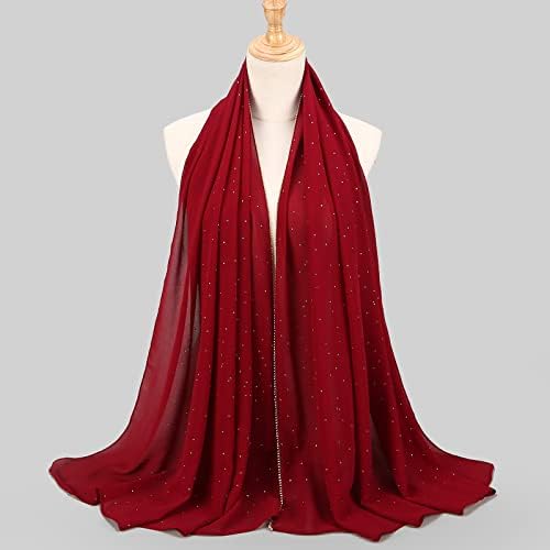ABAFIP Women Chiffon Hijab Muslim Head Wrap Scarves Rhinestone Long Scarf Pashminas Shawls Solid Wraps Under Scarf