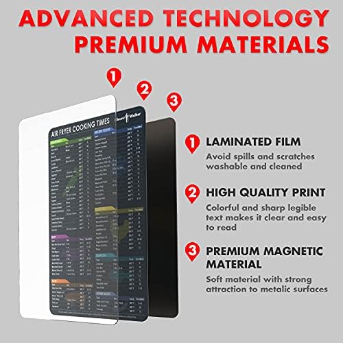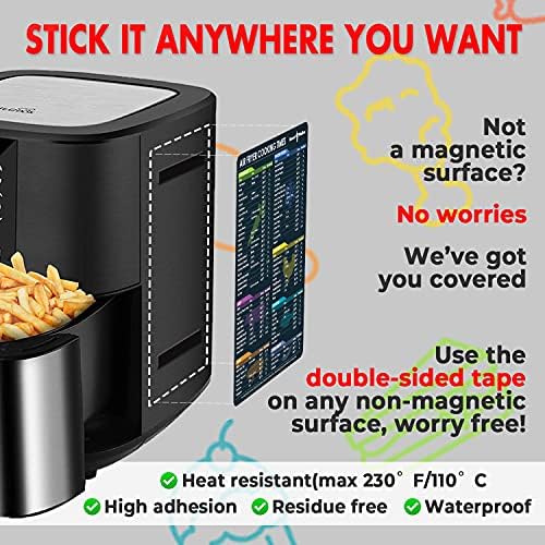 Air Fryer Magnetic Cheat Sheet Set (1 Set of 3 Pcs) - Air Fryer Accessories Cook Times Chart, Air Fryer Cookbook Recipe Cards, Kitchen Accessories with Dry Erase Fridge Whiteboard, Black
