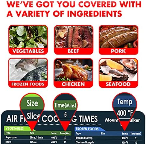 Instead of having to guess how long to cook something in the air fryer, this chart gives great suggestions.