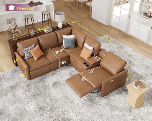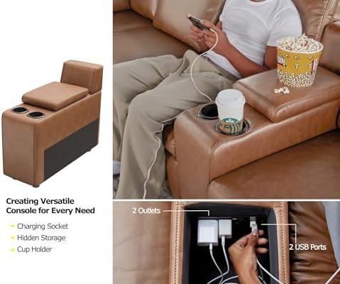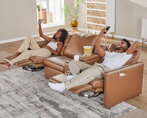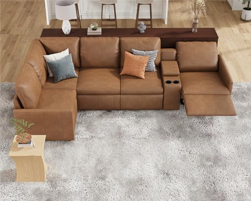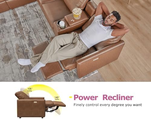 AMERLIFE Power Recliner, Reclining Sectional Sofa with Console& Single Right Recliner, 5 Seats Leather Modular Sofa with Cup Holder& USB Port, L Shaped Couch for Living Room