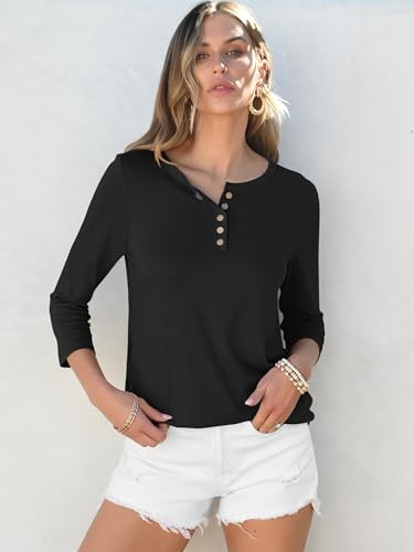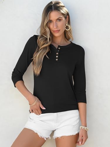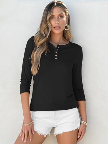 ANRABESS Womens 3/4 Sleeve Tops Henley Shirts Casual Trendy Button T Shirts 2025 Spring Summer Basic Tunic Blouses