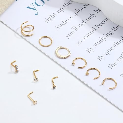 BESTEEL 14K Gold Filled Nose Ring Studs 20G Nose Rings Hoops Stud 316L Stainless Steel Nose Rings