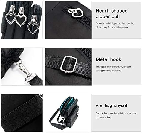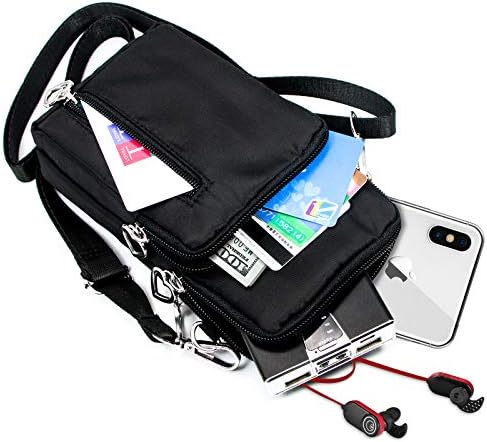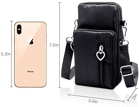 I really like this small crossbody bag. The first reason is it’s cute. I love the dark blue with tiny white flowers and the black strap. The material is light and seems to repel water, and the pockets are lined. The zippers are strong. It also has a hole in the back for earphones or headphone jacks. Also there is an elastic band strap for your hand to securely carry it. The actual strap that goes crossbody has two strong spring lever silver clips and although it’s thinner than I had expected, I find that that’s slightly advantageous because you don’t have a bulky strap across your chest like a seatbelt. It’s adjustable to hip level or higher for me, I’m 5’4” and it’s a perfect length. It fits under my coat or over a sweatshirt easily.Secondly I love having lots of pocket options on a bag. There are plenty of pockets, one front one that is credit card sized, one bigger one in the front, and two top zip ones. Each pocket has a heart shaped silver zipper pull. The hearts add to the cuteness if you are into the small details like me. It’s just right to carry a small RFID case wallet, iPhone, pen, a sharpie marker, pencil, pack of tissues, 2 sets of keys, and a few lifesavers. I bought this for work because my pockets were starting to get annoyingly full and some days I had no pockets and needed to carry my phone and wallet around in my hand. To ease my inconveniences this bag is such a gem. And it was priced right, for me. So if you need a bag that is cute, small, and sturdy enough to last but also economical. This one is just right for you.
