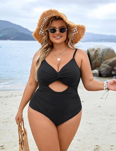 Blooming Jelly Womens Plus Size Bathing Suit Tummy Control One Piece Swimsuit Twist Front Ruched Swimwear