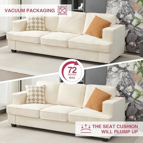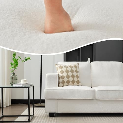 Boucle Couch, Couches and Sofas, Comfy Couch, Couches for Living Room, Sleeper Sofa with Extra Deep Seats, Modern Sofa, Teddy Velvet, Oyster White