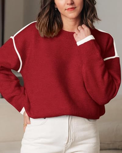 BTFBM Fall Sweaters for Women 2024 Trendy Casual Crew Neck Long Sleeve Loose Ribbed Knit Sweater Pullover Jumper Tops