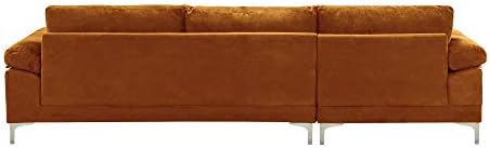 Family room / living room sectional sofa with an extra wide chaise lounge for maximum comfort Ultra soft and durable velvet fabric upholstery loose back pillows for a plush look and feel 5 people can sit comfortably in this couch Available in various fun and vibrant colors to best fit your home decor Plush and durable memory foam seat cushions Some assembly is required - Assembly instructions and hardware included