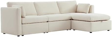 CHITA Oversized Modular Sectional Fabric Sofa Set, FSC Certified Extra Large L Shaped Couch Reversible Chaise Modular Sectional Couch, 112 inch Width,4 Seat Modular Sofa with Storage Ottoman, Linen