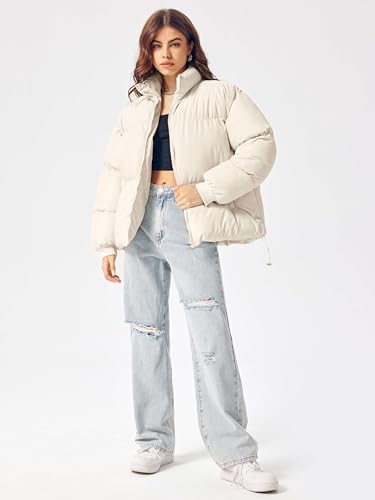 CIDER Women’s Quilted Puffer Jacket Cropped Long Sleeve Stand Collar Zip Up Trendy Winter Coat