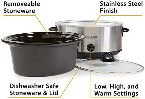 Crock-Pot 7 Quart Oval Manual Slow Cooker, Stainless Steel (SCV700-S-BR), Versatile Cookware for Large Families or Entertaining