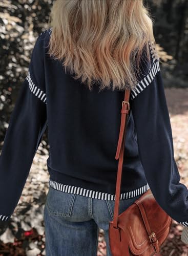 Women's 2024 Fall Fashion Crew Neck Long Sleeve Color Block Knit Loose Pullover Sweater Tops