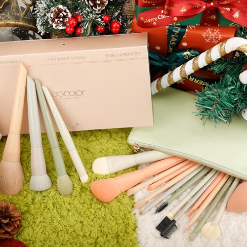 Docolor Makeup Brushes Set 17Pcs Morandi Makeup Brushes with Makeup Bag and Makeup Sponge and Brush Protector Professional Face Powder Foundation Eye Shadow Concealers Brush Kit Gift Box