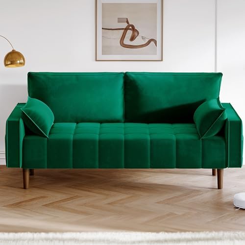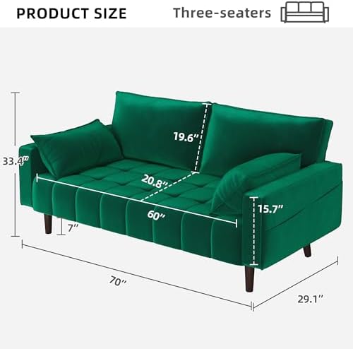 DWVO 70" Loveseat Sofa, Velvet Fabric Sofa Couch for Small Space, Modern Loveseat with Button Tufted Seat and Side Storage Pockect, 3 Seater Couch for Living Room Bedroom, 2 Pillows Included, Green