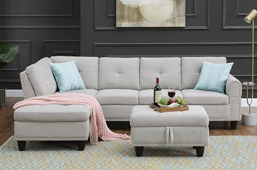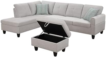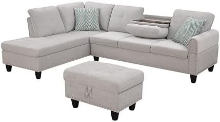 This sofa hane these advantage: 1. Ottoman have storage space. 2. One of the backrest is foldable, when it fold down, it's inside have two cupcolder. 3. Fabric is soft and durable 4. Corner sofa fits the space perfectly