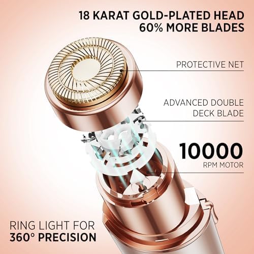 Facial Hair Removal for Women: Rechargeable Hair Removal Device - Painless Womens Face Razor Peach Fuzz (Small Rose)