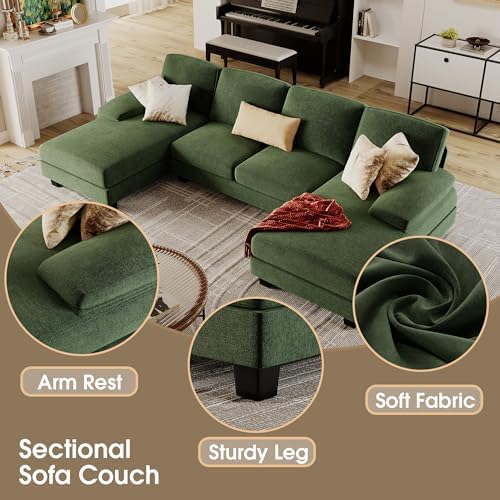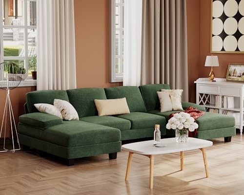 Furmax Sectional Couches for Living Room, U-Shaped Sofa Couch with Linen Fabric, 4 Seat Sofa Set with Double Chaise for Apartment (Fabric, Green)