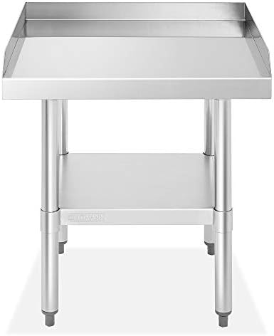 Specially designed for use in commercial kitchens, ice cream shops, snack stands, food trucks, delis, and bakeries. The GRIDMANN equipment stand can fill spaces between cooking equipment or function as a standalone workstation supporting your heavy tools and keeping them within reach. The top shelf can withstand 700 lbs. of evenly distributed weight, while the undershelf can support 540 lbs. of additional supplies, making it the perfect prep table to hold restaurant and concession equipment.