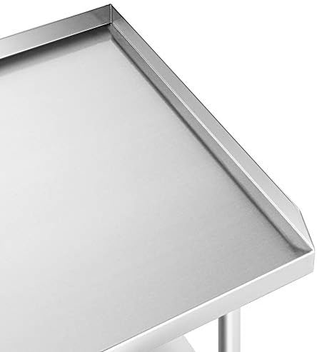 Includes: Stainless steel tabletop, shelf, legs, hardware, and instructions to complete assembly.