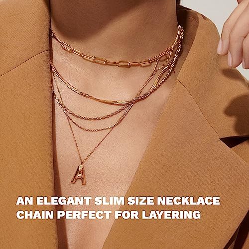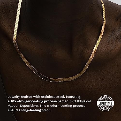 Hey Harper Nassau Necklace - Waterproof & Sweatproof Simple Womens Necklaces for Everyday Wear - Silver, Rose Gold, Gold Necklaces for Women - Stainless Steel Necklace - Herringbone Chain with 14k Gol