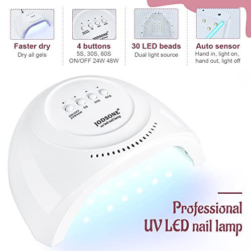 JODSONE Gel Nail Polish Kit 60 PCS with U V Light Soak off Base Top Coat Gel Polish 55 Shine Colors Gel Nail Kit Bright and Dark Brown Wine Red Series Manicure Set for Women and Girls