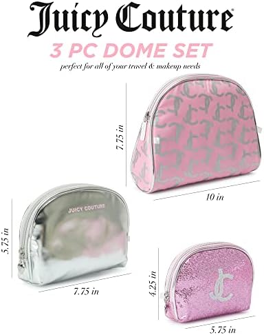 Juicy Couture Women's Toiletries Kit Set - Mixed Trio Travel Makeup and Cosmetics Large Bag, Clutch, Coin Purse, Size One Size, Pink Sparkle