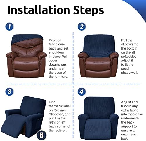 This is my review of the KEKUOU Recliner Chair Cover.Four years ago, I purchased an expensive leather Lazboy Rowan Wall Recliner.When I bought it, I asked the Lazboy sales representative if she could recommend a slipcover for it, but she balked at the idea of covering up such a beautiful leather chair.Since I spend a lot of time in the chair, I’ve begun to see wear patterns in the leather plus food and beverage stains.During the hot summer months, sitting in a leather chair isn’t very comfortable.I first purchased a quilt chair blanket cover.It was comfortable, but it would never stay in place so I bought the KEKUOU Recline Chair Cover.My Lazboy Rowan Wall Recliner is one of the smallest Lazboy recliners; and the KEKUOU was an almost perfect fit.It was simple and intuitive to put on.Unlike the installation video, there was no “elastic band” to hook under the bottom of the recliner.So far, the lack of an elastic band doesn’t seem important.The KEKUOU does NOT fit my Lazboy like a glove, but it fitted better than I expected.It does NOT make my Lazboy look better.It does, however, make my Lazboy a lot more comfortable since the fabric feels so good; but most importantly, it protects the original leather cover.The KEKUOU is like a bed sheet.After you sit on it, you have to tuck it in to make it look nice.If not, it looks like an unmade bed.For some highbrow people, the KEKUOU might look like a tacky aftermarket slipcover and using this to cover an expensive and beautiful leather Lazboy is a crime against good taste and aesthetics.For me, the KEKUOU makes my Lazboy more comfortable and more protected from daily usage.I'd buy it again.