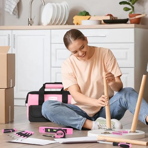 275-piece pink tool set: wrench, Allen key, claw hammer, level, screwdriver, screwdriver bit, tape measure, utility knife, pliers, scissors Batteries Included?