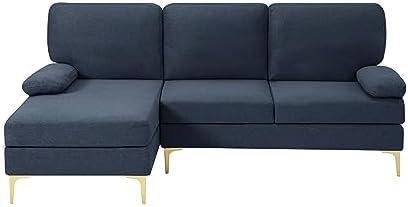 Product Details Weights & Dimensions Overall - Sofa 79.5” x 52.8” x 33.9”H Seat Height 16.9” Back Height 18.1” Arm Height 21.3” Leg Height 5.9” Thickness of seat cushion 3.9” Minimum door width 8” Product Weight 106.7 LBS Package Weight 125.22 LBS Carton size 52.36” x 28.35” x 7.48” / 67.24 LBS 52.36” x 28.35” x 7.48” / 57.98 LBS Specifications Product Type Sectional Design Sofa & Chaise Shape L-Shaped Orientation Left hand facing Number of Pieces 2 Seating Capacity 3 Upholstery Material 100% Polyester Upholstery Colour Black, Dark grey, Light grey, Navy blue Seat Fill Material Foam Back Fill Material Synthetic Fiber Frame Material Solid + Manufactured Wood Seat Construction Solid wood + Pocket Spring Leg Material Metal legs Leg Color Golden color Back Type Cushion back Arm Type Pillow top arms Back & Seat Cushions are removable Toss Pillows No Wood Species Eucalyptus Joinery Corner-block-reinforced Main Wood Joinery Method Basic Butt Kiln-Dried Wood Yes Storage No Weight Capacity 300 LBS each seat Product Care Wipe clean with dry cloth, do not use strong liquid cleaners Intended Use Residential Use Country of Origin China Shipping Courier Assembly Assembly Required Yes Level of Assembly Partial Assembly Assembly Time 20 Minutes Adult Assembly Required Yes Suggested Number of People 2 Additional Tools Required All tools included