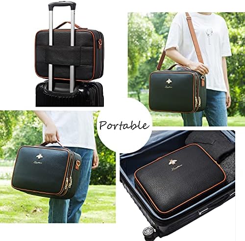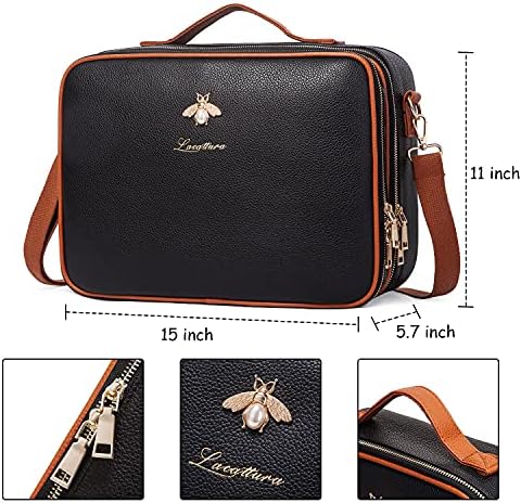 LACATTURA Travel Makeup bag, Leather Makeup Train Case Cosmetic Organizer for Makeup Brushes Toiletry Digital Accessories, Portable Artist Storage Bag With Shoulder Strap for Women lady Black, Large