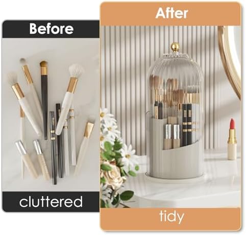 Makeup Brush Holder Organizer with Lid,360 Rotating Clear Dustproof Makeup Brushes Organizer for Vanity Desktop Bathroom Countertop (Transparent)