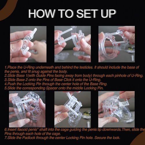 While there is a slight learning curve to Chastity devices, The video "Unboxing Transparent Cage" on the Amazon page creates a smooth understanding of the mechanics.