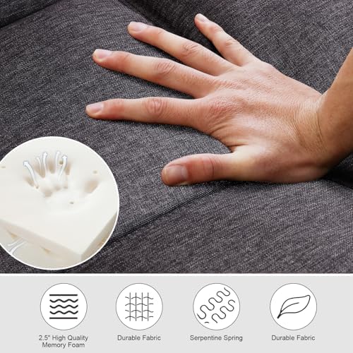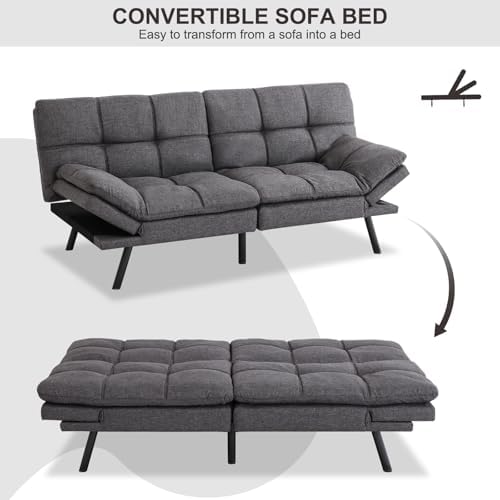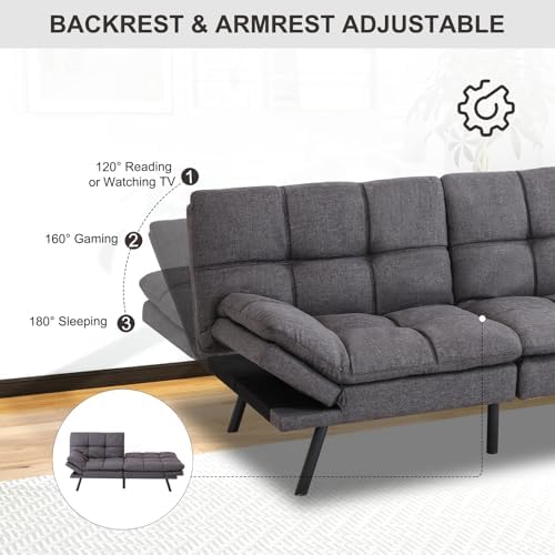 MUUEGM Futon Sofa Bed Couch Convertible Futon Memory Foam Futon Couch Bed Modern Sofa Couch Love Seat Sleeper Sofa for Small Space,Living Room,Office,Adjustable Backrests&Armrests Sofabed,Dark Grey.